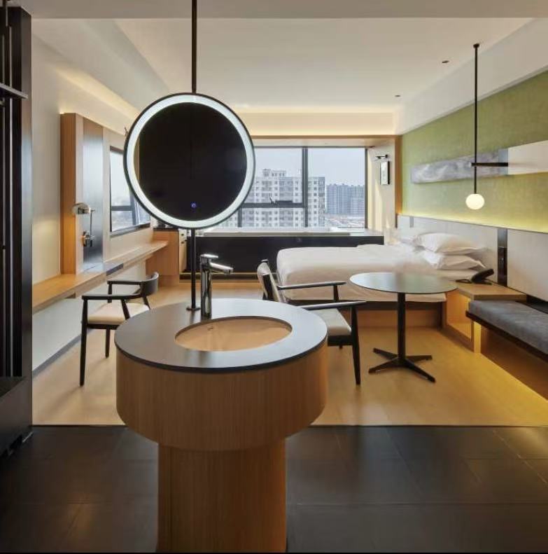 客房布局科学合理,整体色调柔和雅致,软装搭配简约克制,在满足基础旅居功能的同时,兼顾空间美学与居住舒适感。