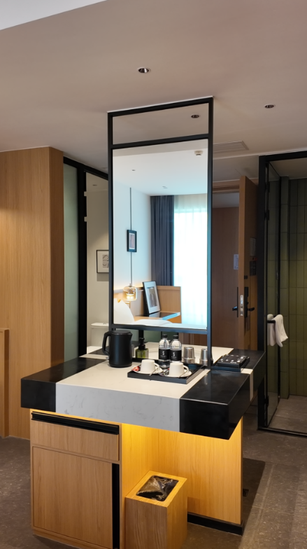 功能创新:针对商旅客人需求,部分房型设置独立休闲茶室,将采光最佳区域打造为放松与洽谈空间;全屋智能客控系统提升居住便捷性,让科技与设计无缝融合。